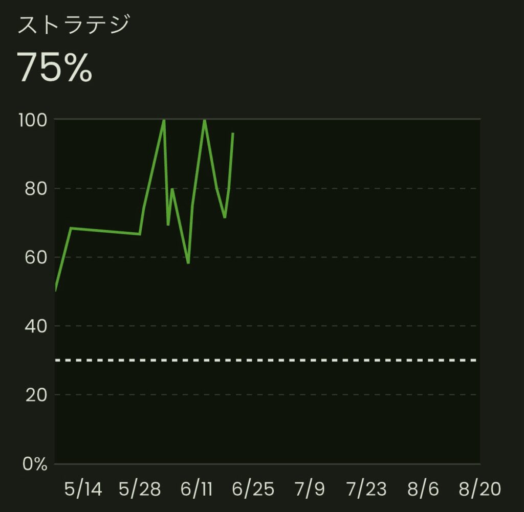 このように、波はあるものの 徐々に安定して70%前後を取れるように成長 していきました。
