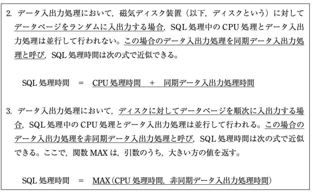 「SQL処理時間=MAX(CPU処理時間,データ入出力処理時間)」とある。