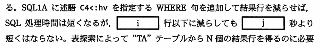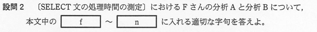 設問2は、〔SELECT文の処理時間測定〕に関して、処理時間を答える問題。