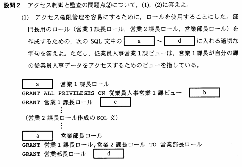設問2ー(1);ロールを付与するSQL文