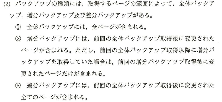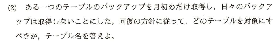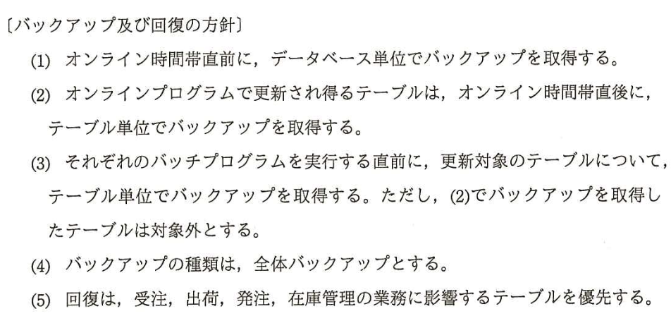 下記の〔バックアップ及び回復の方針〕と表1、表2を読み、整理していく。