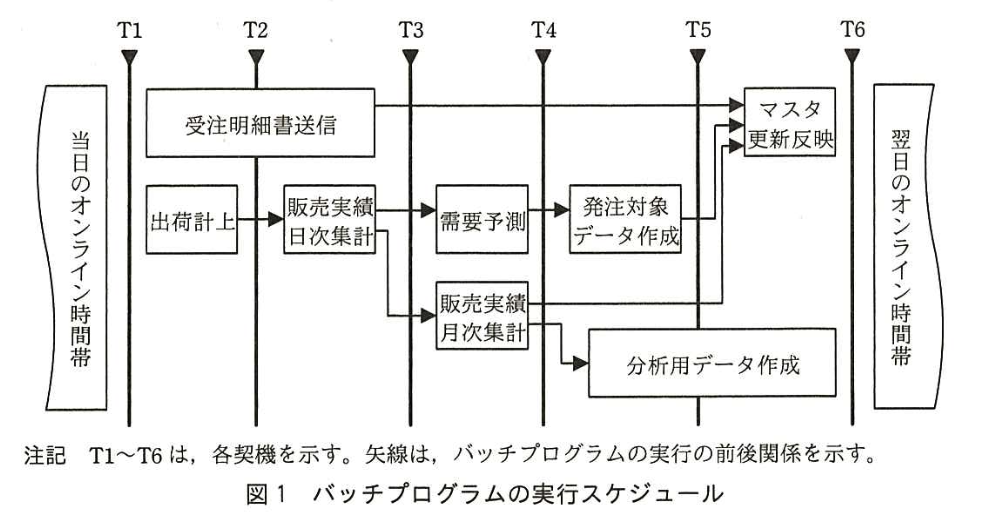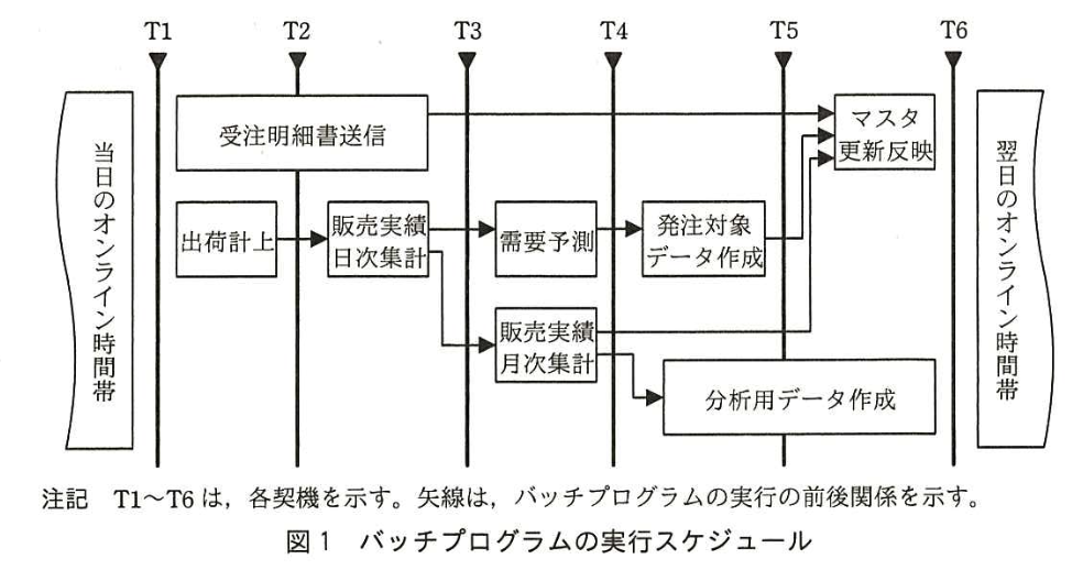 | パッチ処理の判断 | 論理障害が発生したテーブルに対し、並行して実行中のパッチプログラムが参照または更新しているかをデータフロー(図1)と仕様(表1)から確認する。影響があれば再実行、なければ継続とする。 |