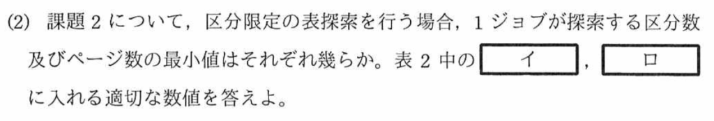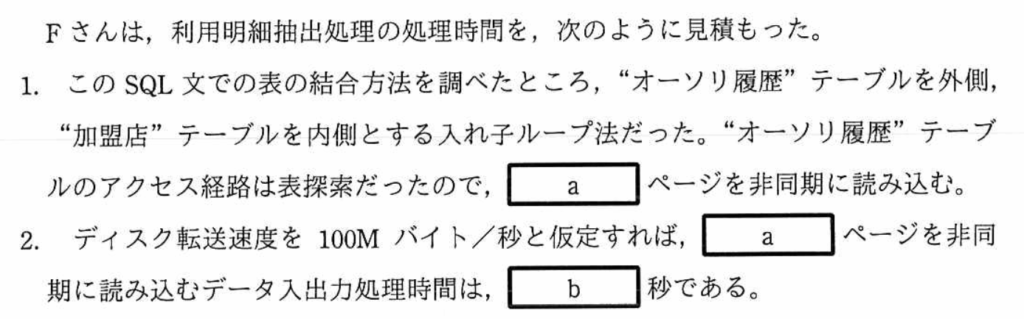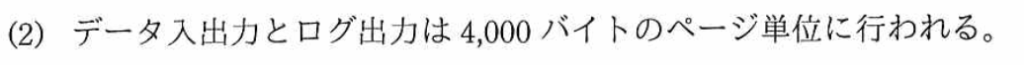 〔RDBMSの主な仕様〕の「2.データ入出力とログ出力」の(2)から、「データ入出力とログ出力は4,000バイトのページ単位に行われる」と記載がある。よって、入出力するデータの容量は、次のように計算できる。