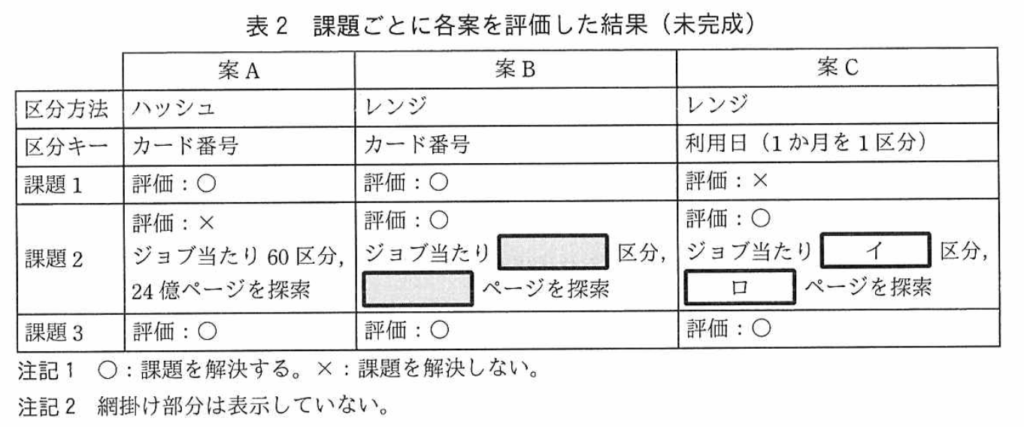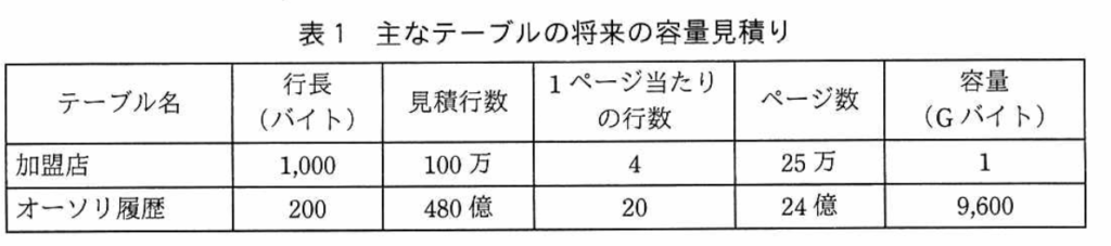 表1の容量見積もりを確認しながら回答していく。