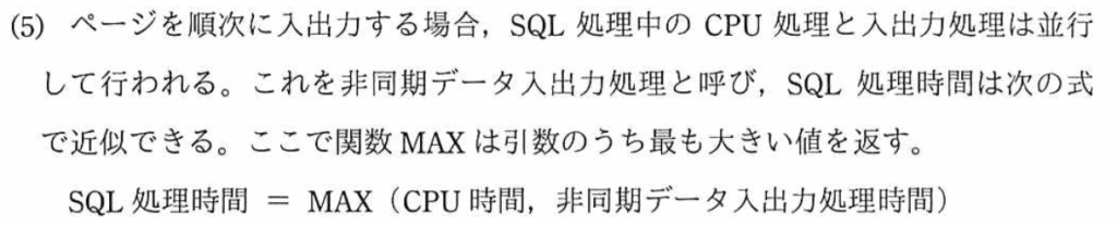 SQL処理時間は、「①CPU処理時間」と「②データ入出力処理時間」の合計となるので、