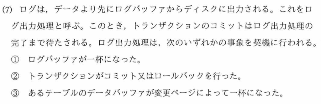 - ログは障害復旧の「唯一の証拠」なので、必ず順序を守ってディスクに記録しなければならない