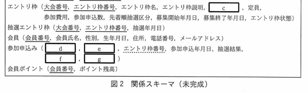 設問3(1)は、多段階抽選方式に対応するための関係スキーマの変更について、下記①〜③に答える問題である。